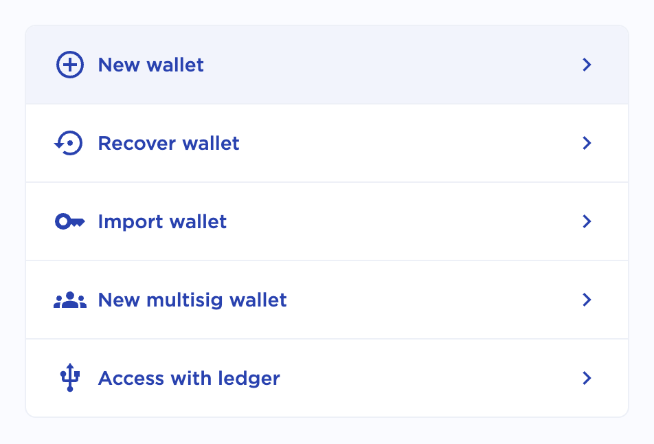 - Open the browser extension and click New wallet.