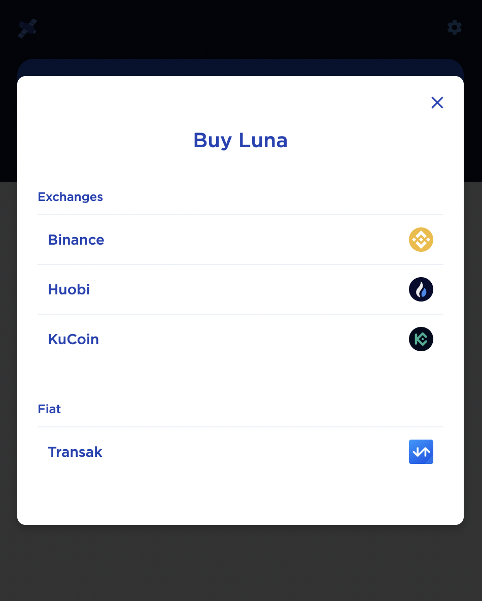 - Connect to your wallet and click Buy next to any token listed to purchase tokens utilizing an exchange that supports Terra.