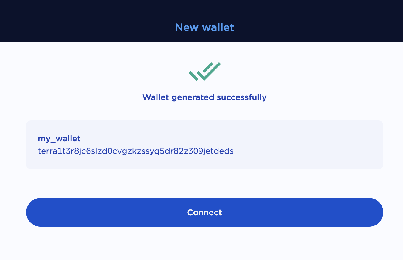 - Click Connect to connect to your new wallet.